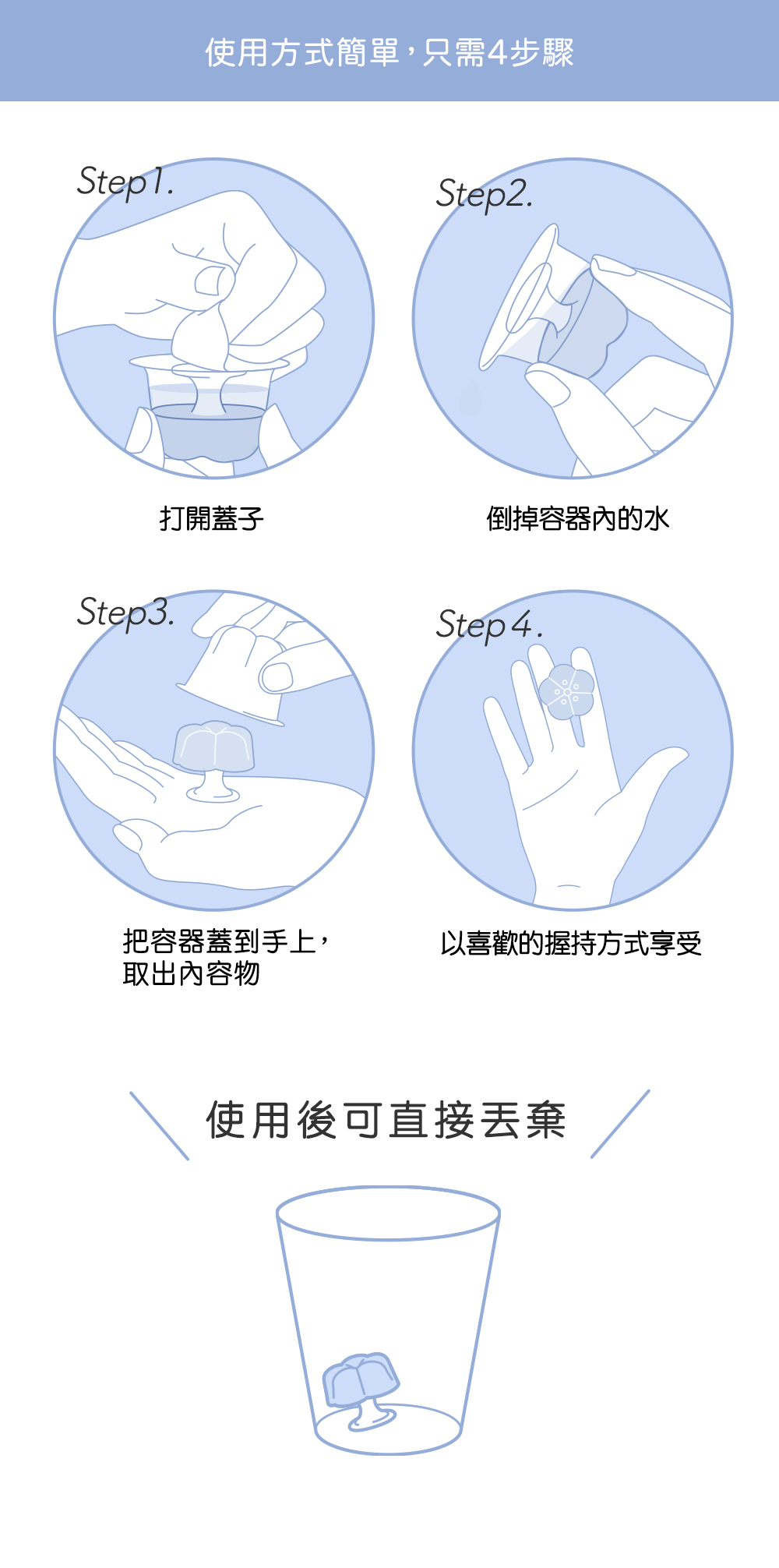 使用前,請先保持雙手與按摩棒的潔淨。輕輕觸摸、調整至適合的模式,探索自身的舒適節奏。為獲得最佳體驗,可搭配水性潤滑劑,增加柔滑觸感。(請勿使用油性即矽性潤滑液,會損壞玩具表面)