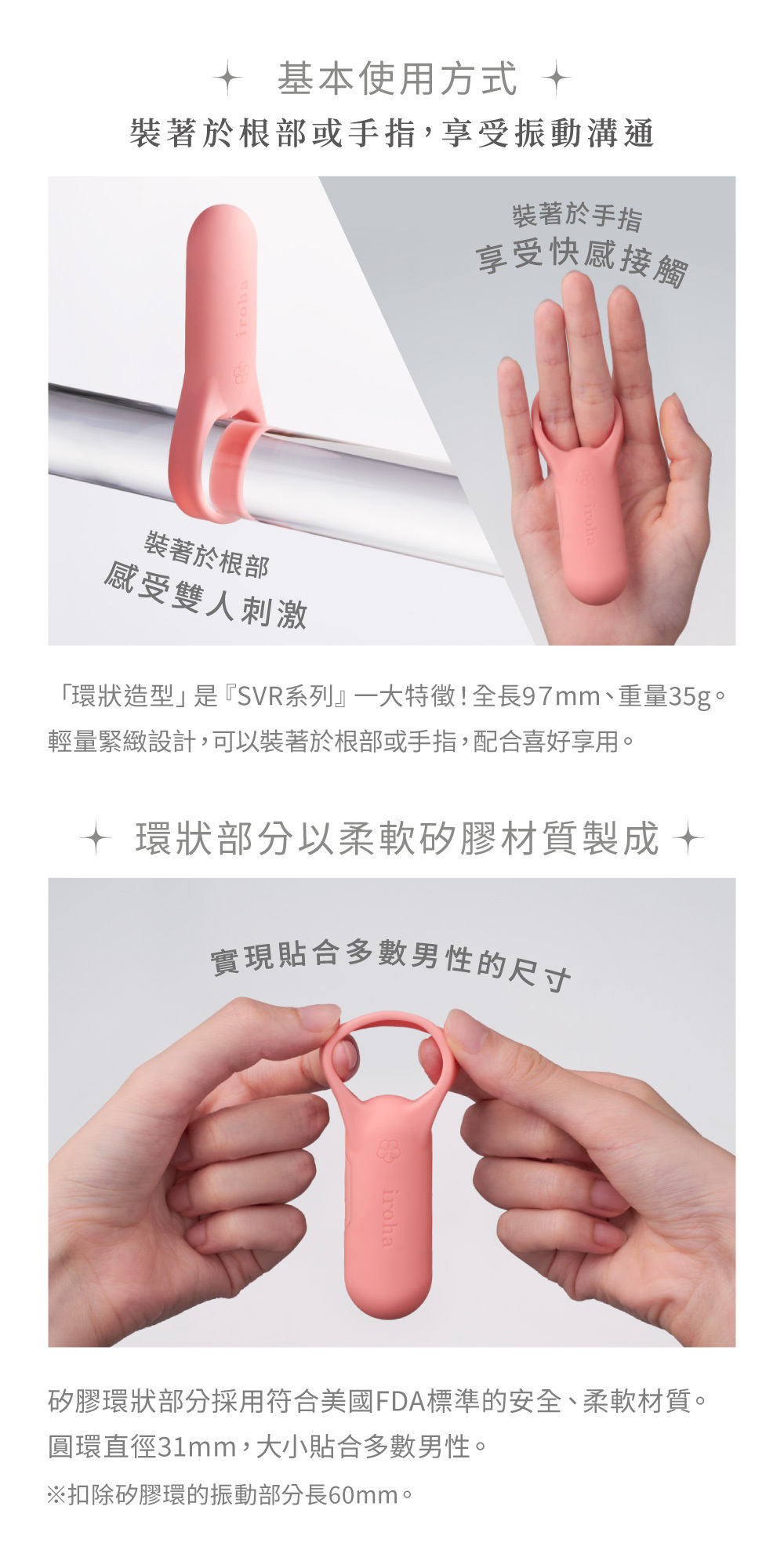 SVR巧振環裝著於根部或手指,享受振動溝通 裝著於手指 享受快感接觸。